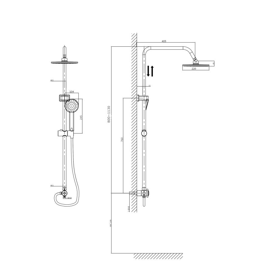 Размер верхнего душа мм.