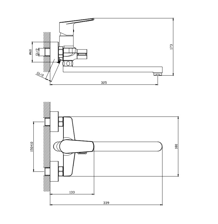 В смеситель установлен картридж D-35 с керамическими пластинами, а также дивертор с керамическими пластинами. Пластиковый аэратор с нержавеющим корпусом. Излив поворотный 325 мм (от стены).