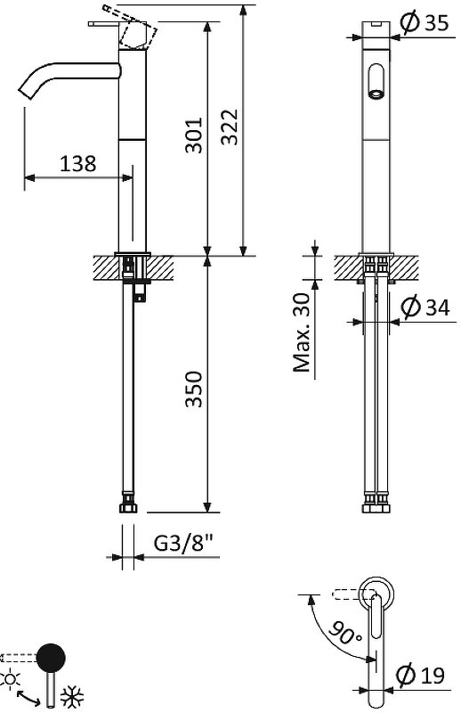 Высота излива см./мм.
