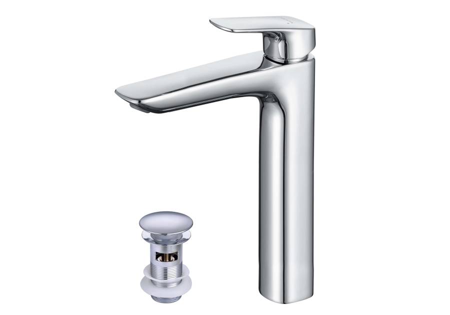 1. Смеситель 2. Гибкая подводка 50см 3. Монтажный комплект 4. Донный клапан клик-клак |
