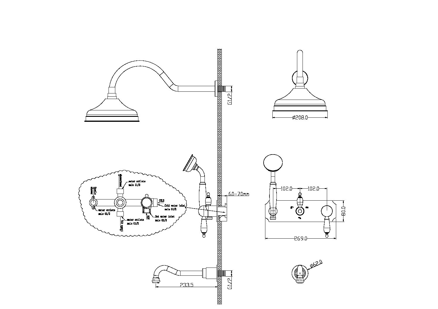 Смеситель встроенный верхний душ ручной душ |