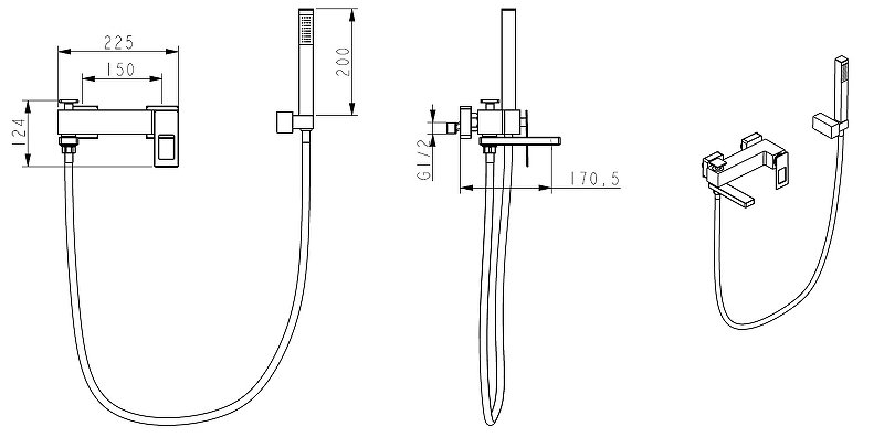 Смеситель для ванны. Ручной душ. Душевой шланг. Держатель ручного душа. Комплект эксцентриков. Комплект креплений. |