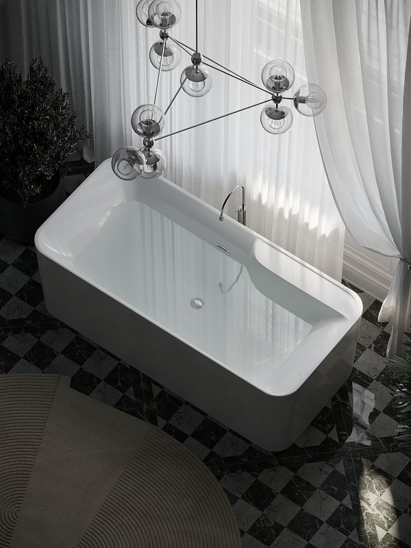 Ванна с экраном, алюминиевая рама, слив-перелив интегрированный, донный клапан "Click-Clack", сифон |