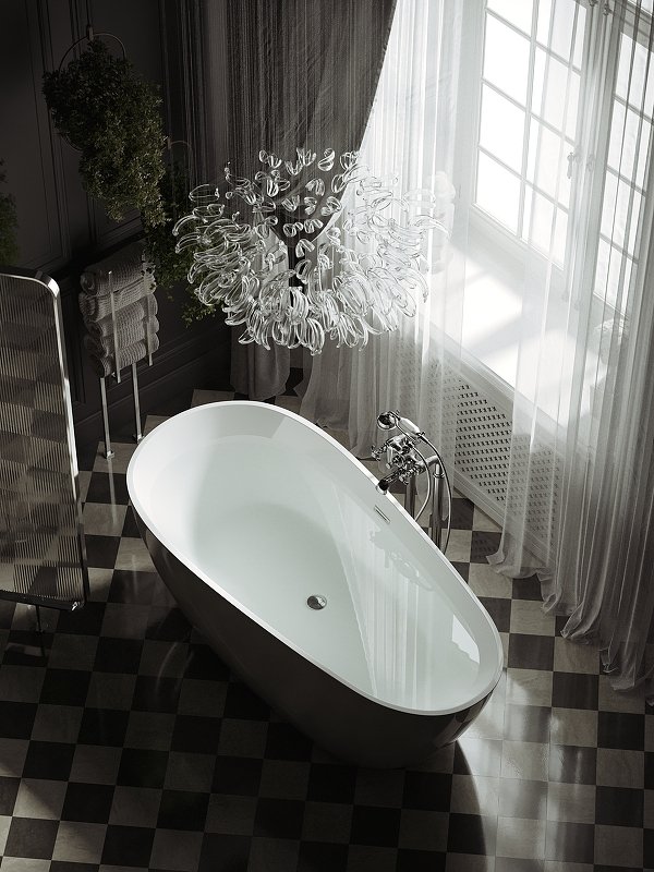 Ванна с экраном, алюминиевая рама, слив-перелив интегрированный, донный клапан "Click-Clack", сифон |