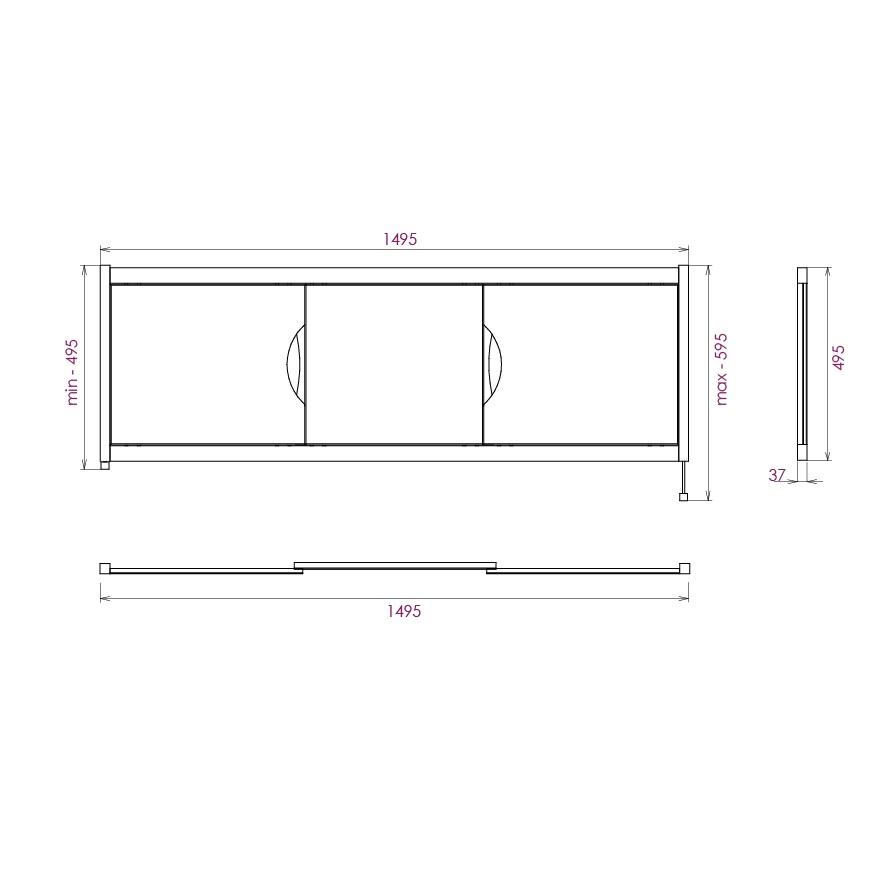 Ножки позволяют регулировать экран по высоте от 52 до 60 см, благодаря этому экран является универсальным и впишется в интерьер любой ванной комнаты.