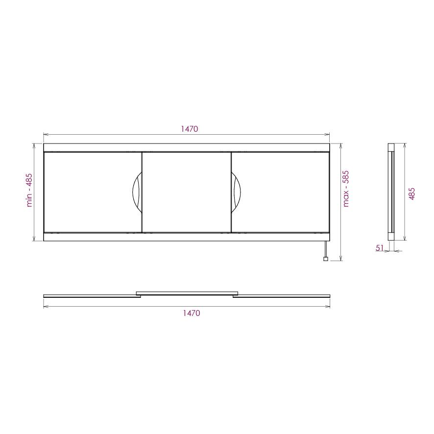 Ножки позволяют регулировать экран по высоте от 52 до 60 см, благодаря этому экран является универсальным и впишется в интерьер любой ванной комнаты.