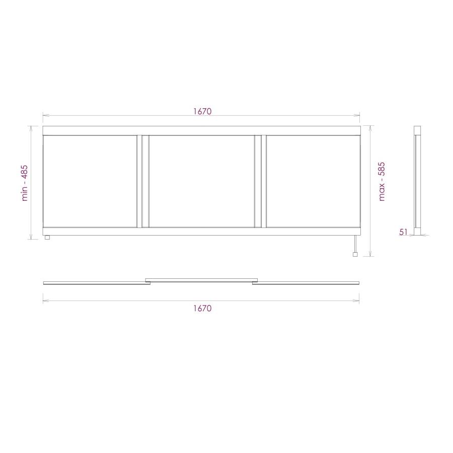 Ножки позволяют регулировать экран по высоте от 52 до 60 см, благодаря этому экран является универсальным и впишется в интерьер любой ванной комнаты.