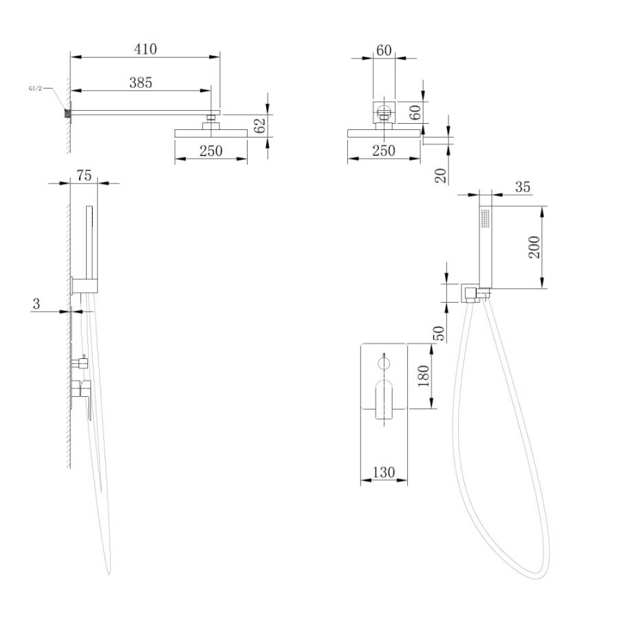 Размер верхнего душа мм.