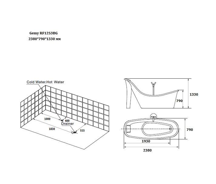 Каркас, смеситель с изливом, душевая лейка |