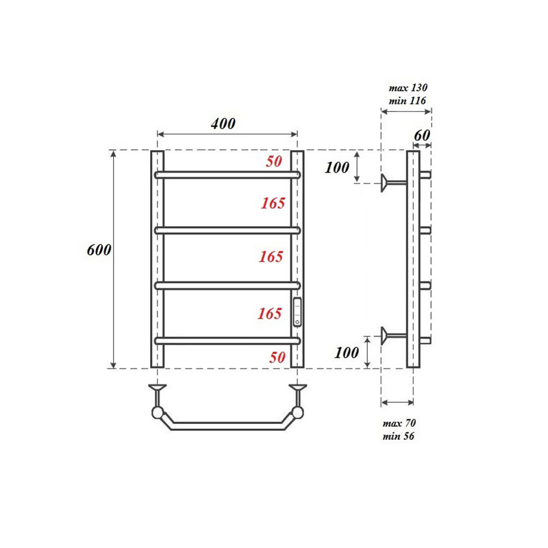 Полотенцесушитель - 1 шт, кронштейны для крепления к стене - 3 шт, сетевой кабель - 1 шт, комплект скрытого подключения - 1 шт, паспорт/гарантийный талон - 1 шт |