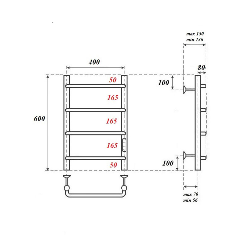 Полотенцесушитель - 1 шт, кронштейны для крепления к стене - 3 шт, сетевой кабель - 1 шт, комплект скрытого подключения - 1 шт, паспорт/гарантийный талон - 1 шт |