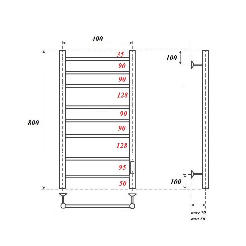 Полотенцесушитель - 1 шт, кронштейны для крепления к стене - 3 шт, сетевой кабель - 1 шт, комплект скрытого подключения - 1 шт, паспорт/гарантийный талон - 1 шт |