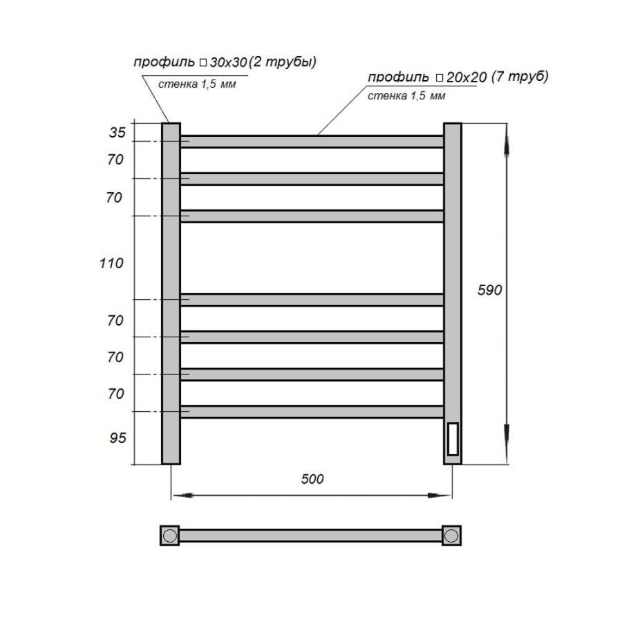Полотенцесушитель - 1 шт, кронштейны для крепления к стене - 4 шт, сетевой кабель - 1 шт, комплект скрытого подключения - 1 шт, паспорт/гарантийный талон - 1 шт |