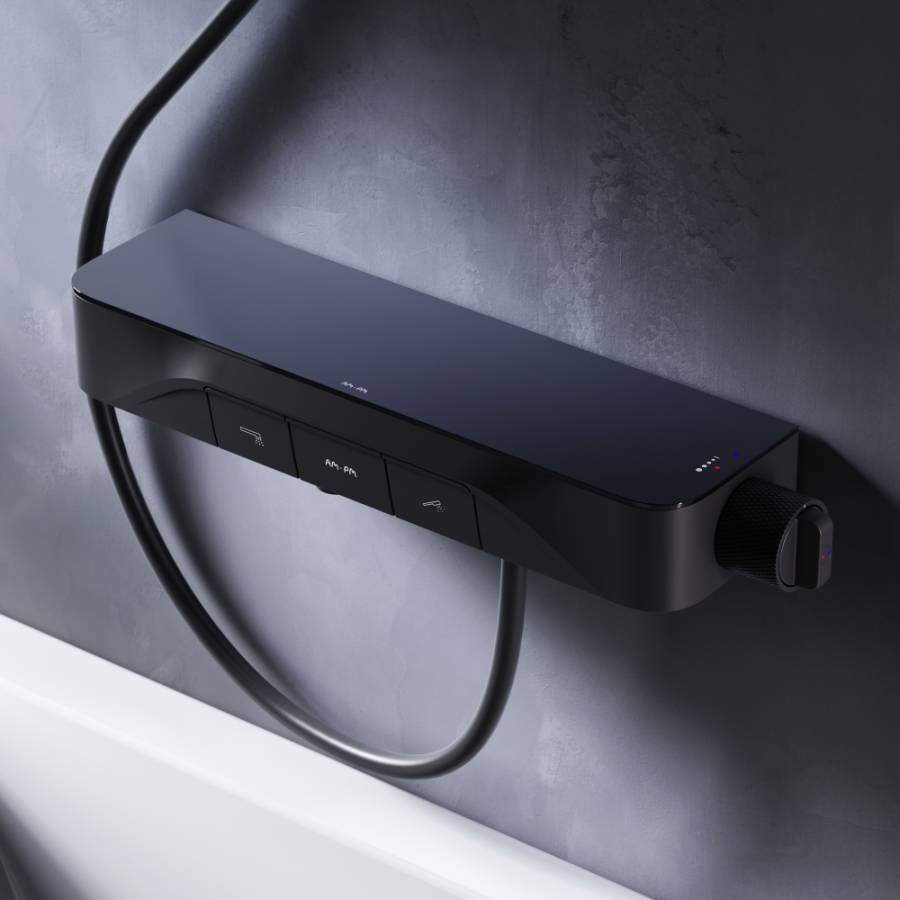 Интуитивно понятное управление: всего одна удобная ручка для настройки температуры и потока воды. Благодаря специально спроектированной эргономичной ручке вы можете управлять душевым смесителем даже с мыльными руками. Переключение потоков воды осуществляется нажатием клавиши. Комбинированный способ управления и вариативность функций делают смеситель одним из самых удобных на рынке. ""