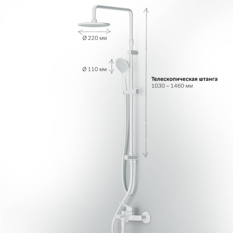 Диаметр душевых леек (верхний душ 220 мм и ручной душ 110 мм) позволит ощутить преимущества тропического душа даже в стандартной ванной тогда как увеличенная длина шланга 1750 мм обеспечит свободу движений во время принятия душа._x000D_