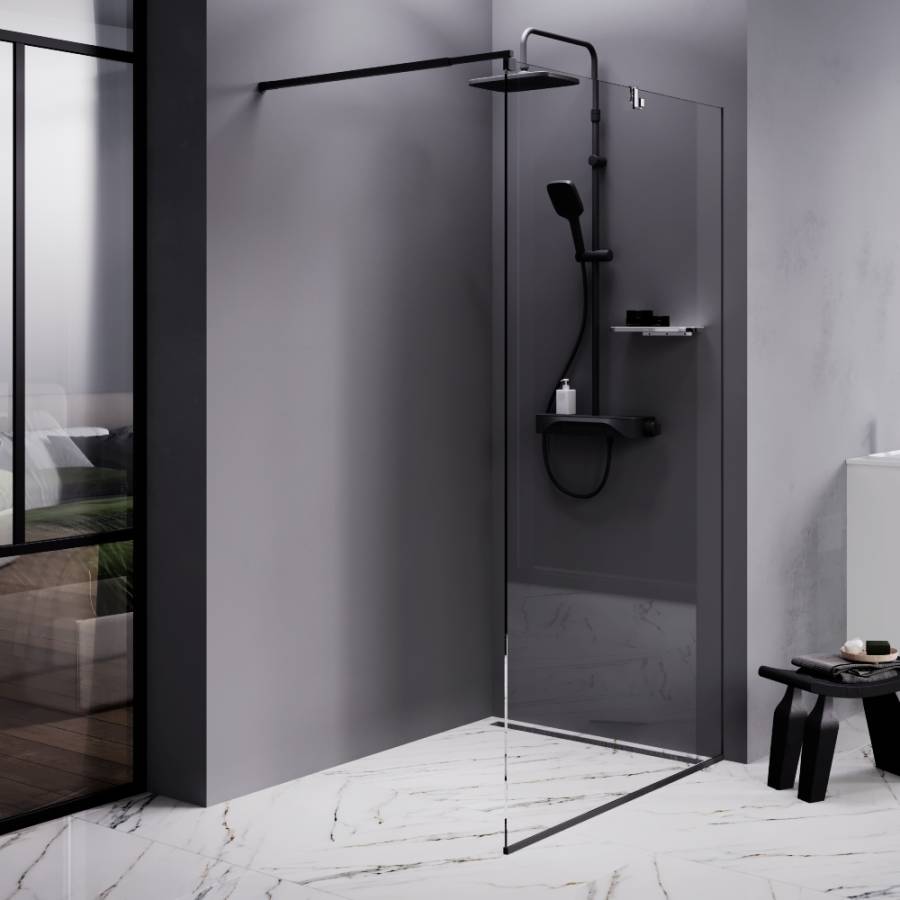 Высота 2 м регулируемый по длине кронштейн 80 - 120 см. Анодированный профиль и ударопрочное прозрачное стекло толщиной 8 мм гарантируют долгую службу. Защитное антиизвестковое покрытие EasyClean помогает легко поддерживать чистоту стекла. _x000D_