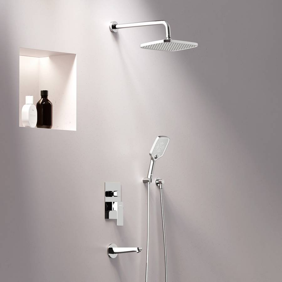 Инновационное покрытие High Gloss гарантирует чрезвычайную прочность душевой системы надежно защищая хромовую поверхность от механических повреждений коррозии и потери цвета. ""