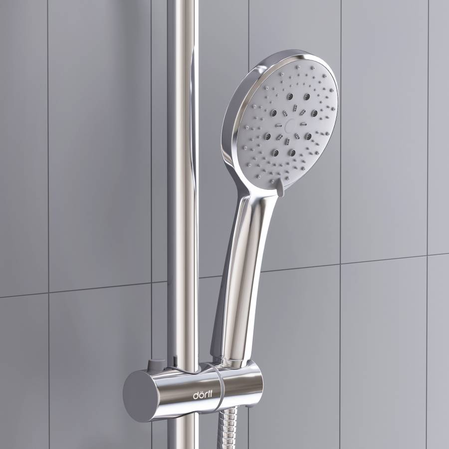 Душевая система Futura с тропическим душем ручным душем с 3 функциями и длинным шлангом в 1500 мм - просто находка в своем сегменте. А стойка с возможностью регулировки по высоте станет приятным бонусом для тех кто ценит эргономичность и функциональность. _x000D_