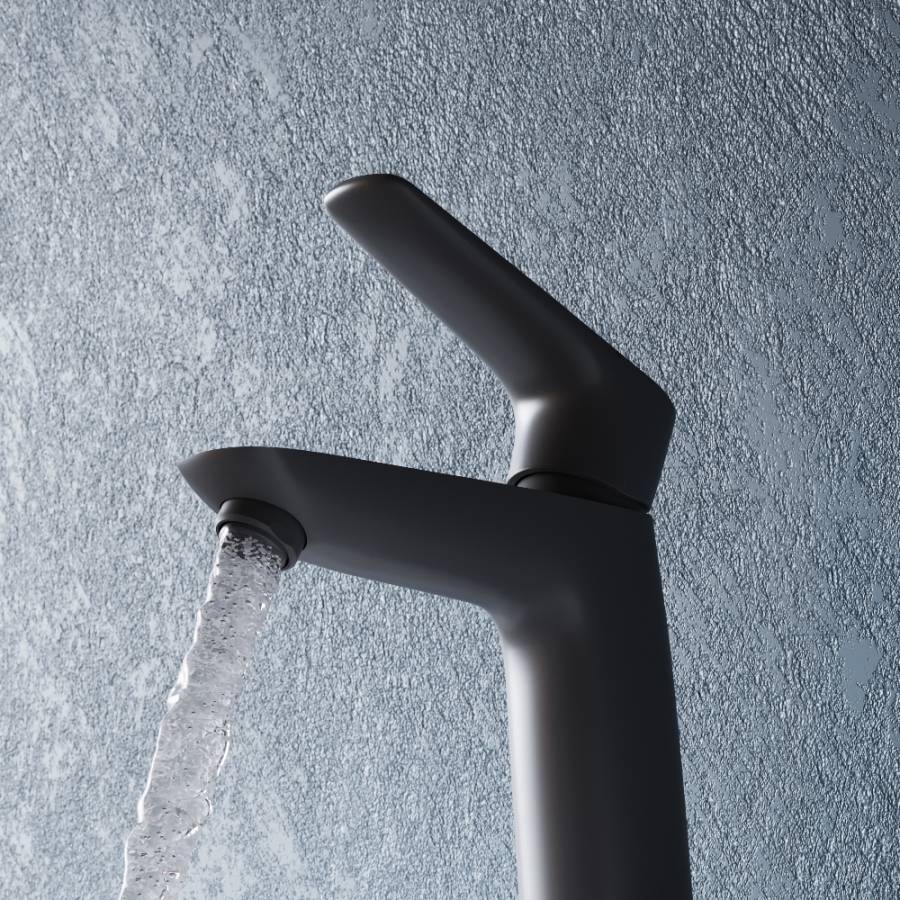 Трендовый матовый черный цвет. У смесителей коллекции Prime New лаконичный и сдержанный дизайн: они выглядят современно благодаря тонким граням и эргономичной ручке._x000D_