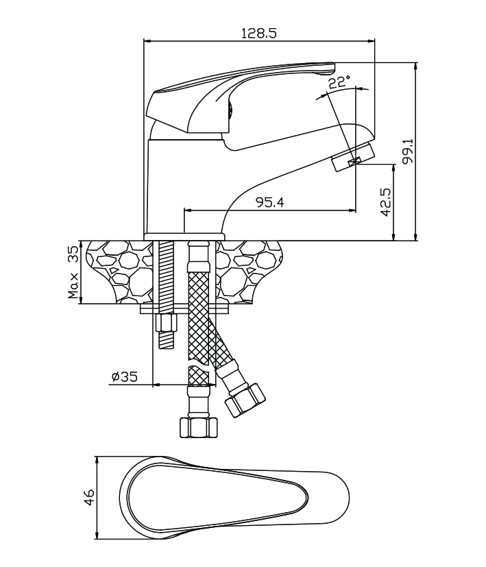 Высота излива см./мм.