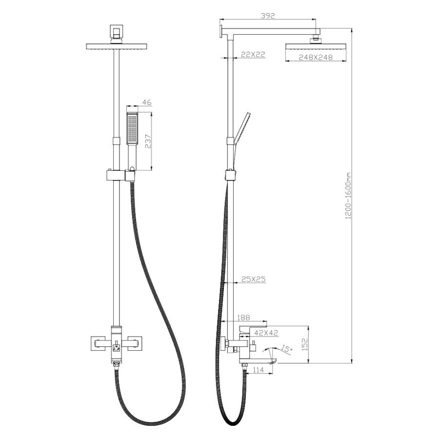 Регулируемая высота душевой стойки 120-160 см
