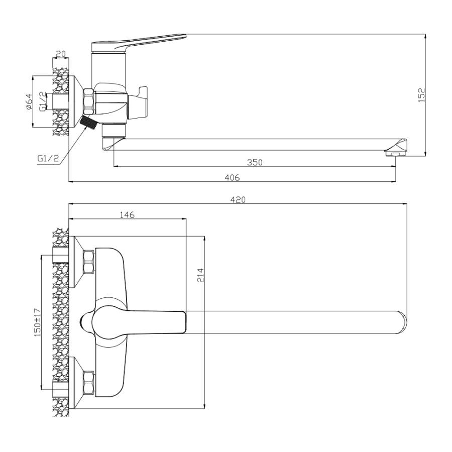 Увеличенная длина излива 35 см.
