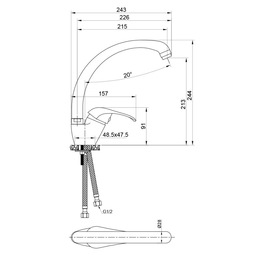 Высота излива см./мм.