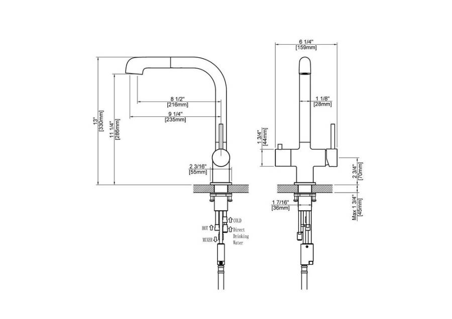 С подключением фильтра и выдвижной лейкой |