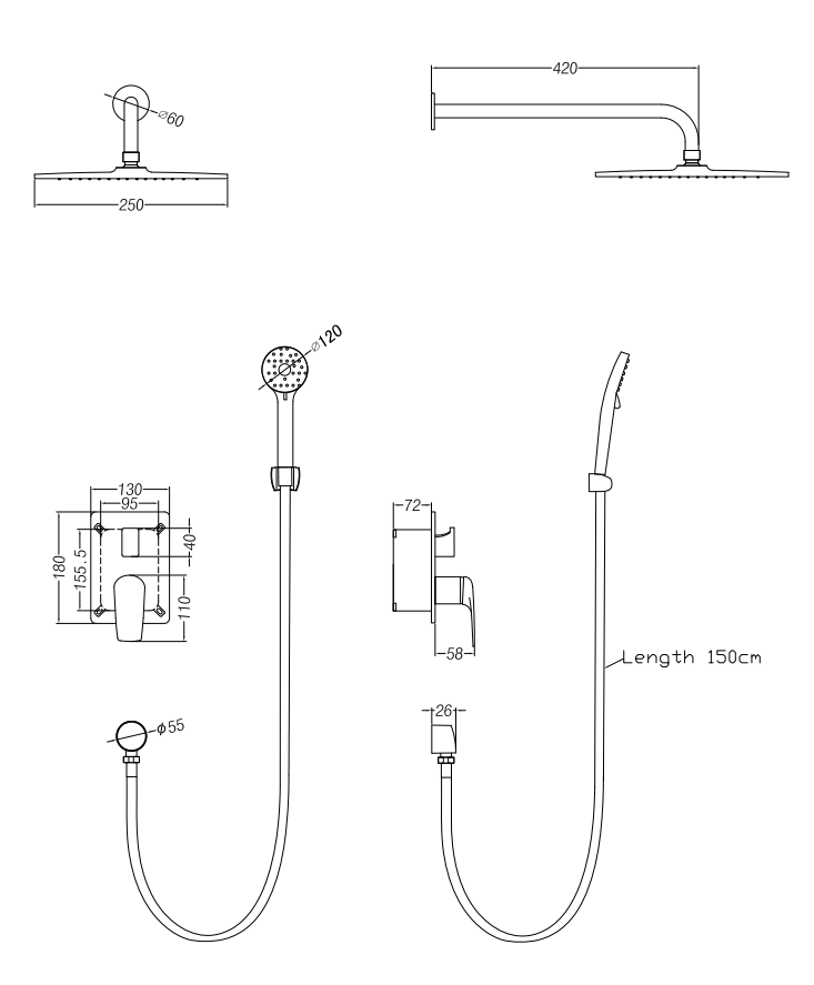 Размер верхнего душа мм.