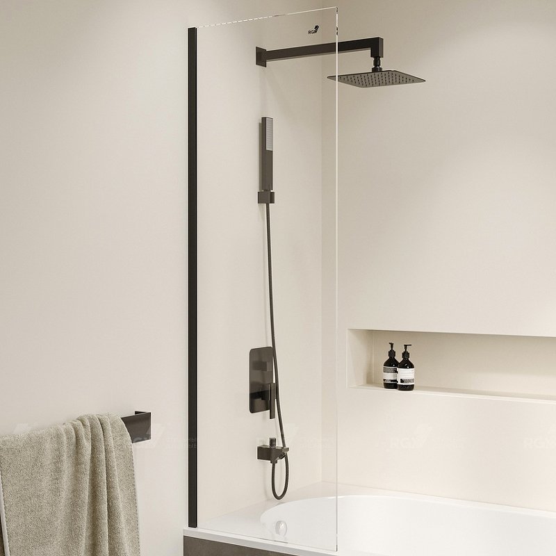Толщина стекла 8 мм позволяет ей выдерживать значительные нагрузки и не повреждаться при ударах. Прозрачное стекло придает легкость и элегантность дизайну шторки, а черный профиль добавляет ей привлекательности и стильности, что позволяет ей гармонично вписываться в различные интерьеры.