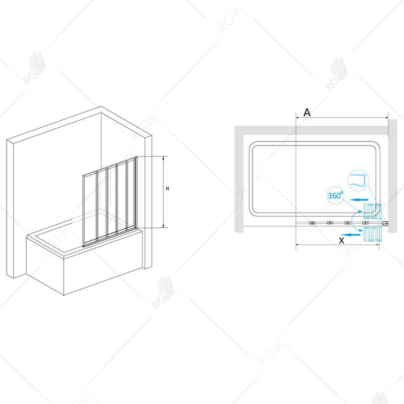 Высота стеклянной шторки составляет 1500 мм, что является оптимальной высотой для использования в ванной комнате. Конструкция шторки складная. Это значит, что она удобно складывается, что позволяет свободно использовать пространство в ванной комнате.