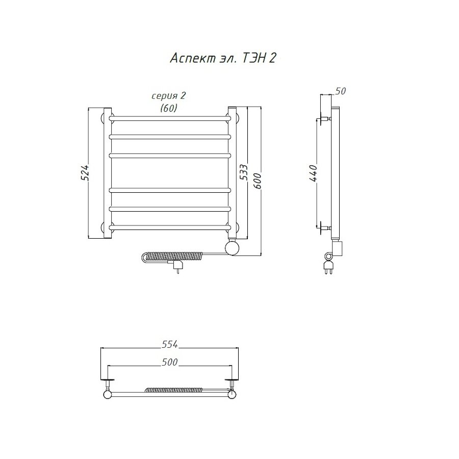 Электропровод с вилкой; Направление подключения: Левое, Правое |