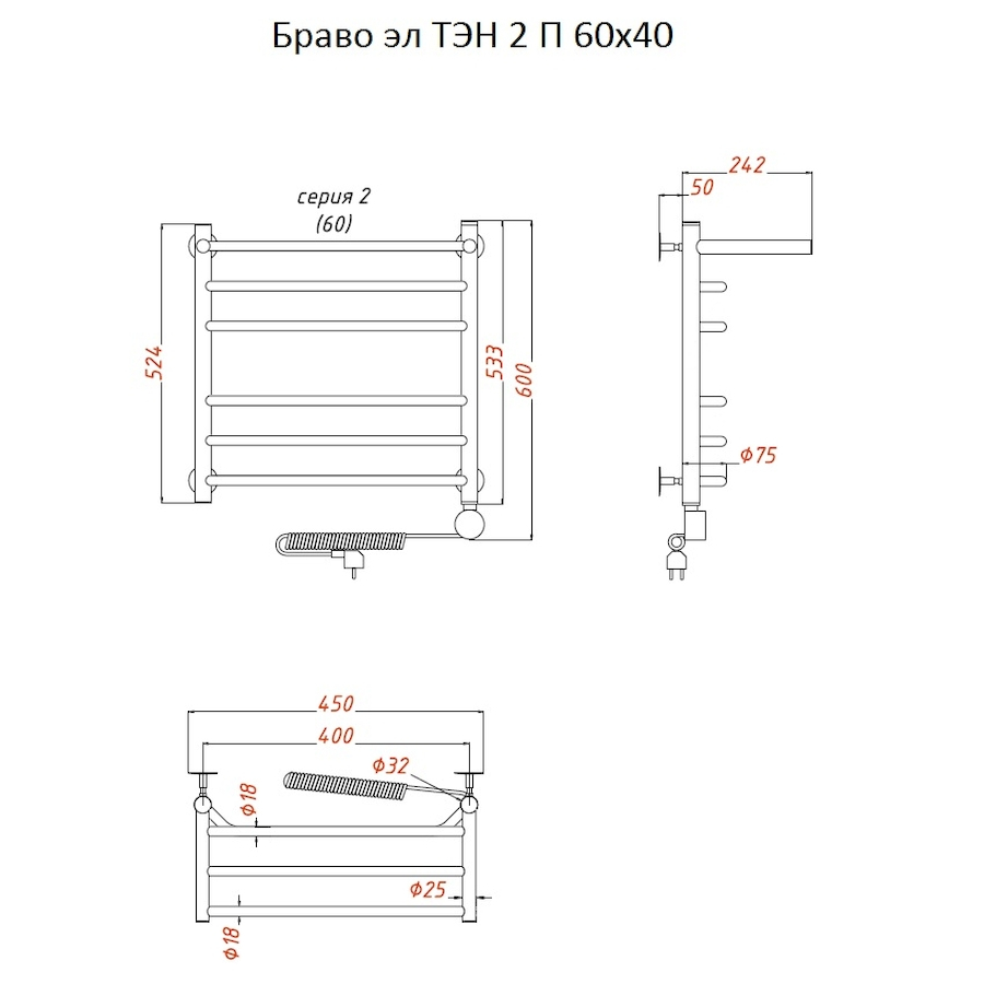 ТЭН 300 Вт, Бытовой антифриз, Заглушка с воздухоотводчиком |