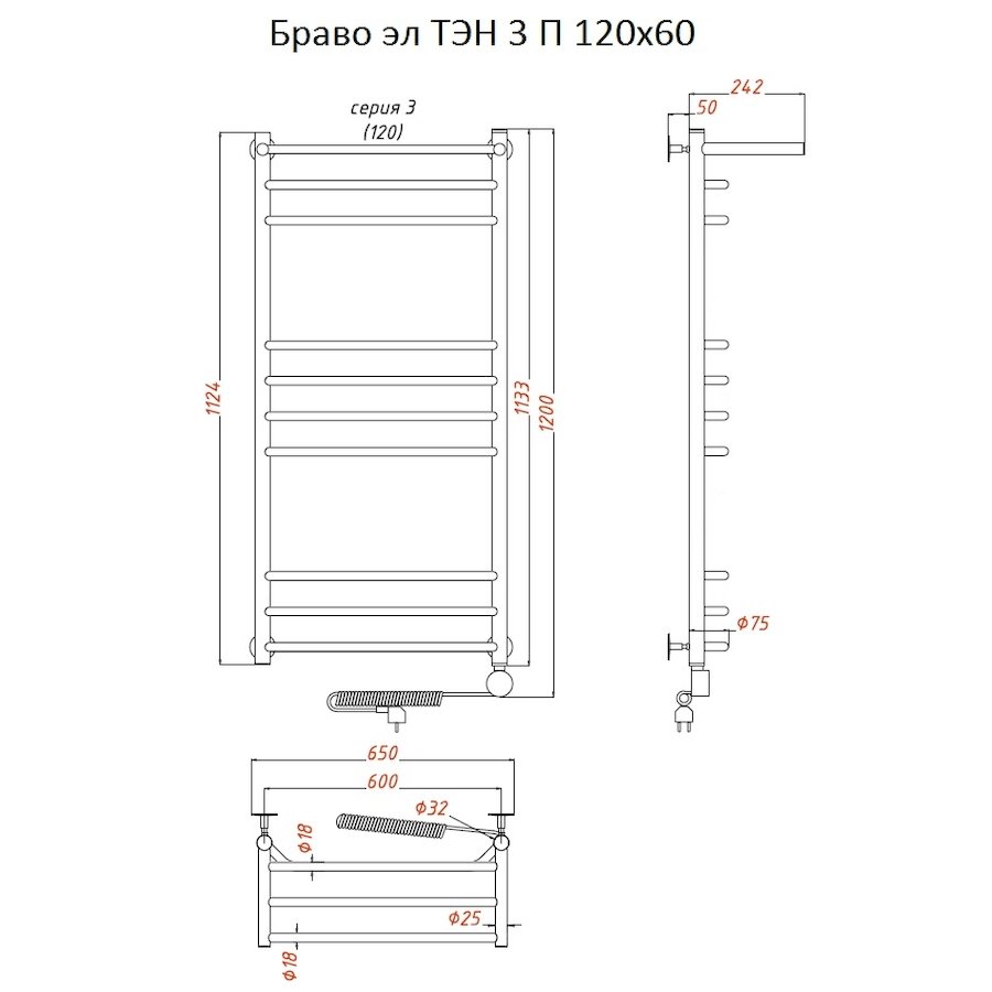 ТЭН 300 Вт, Бытовой антифриз, Заглушка с воздухоотводчиком |
