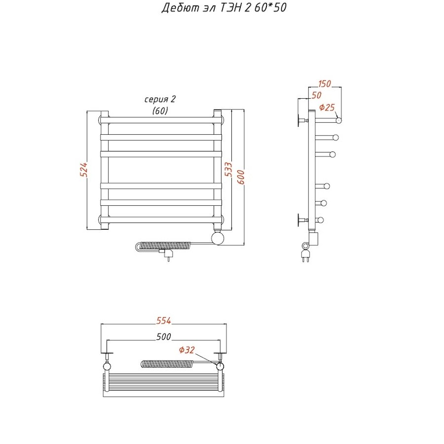 Электропровод с вилкой; Направление подключения: Левое, Правое |