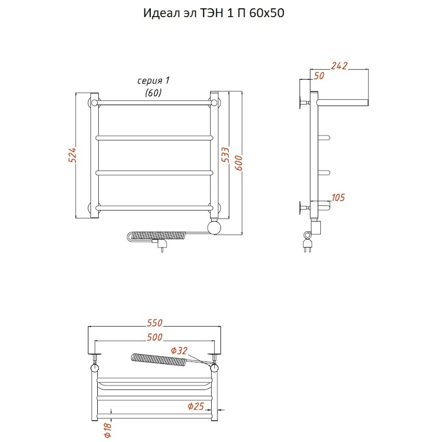 Электропровод с вилкой; Направление подключения: Левое, Правое |