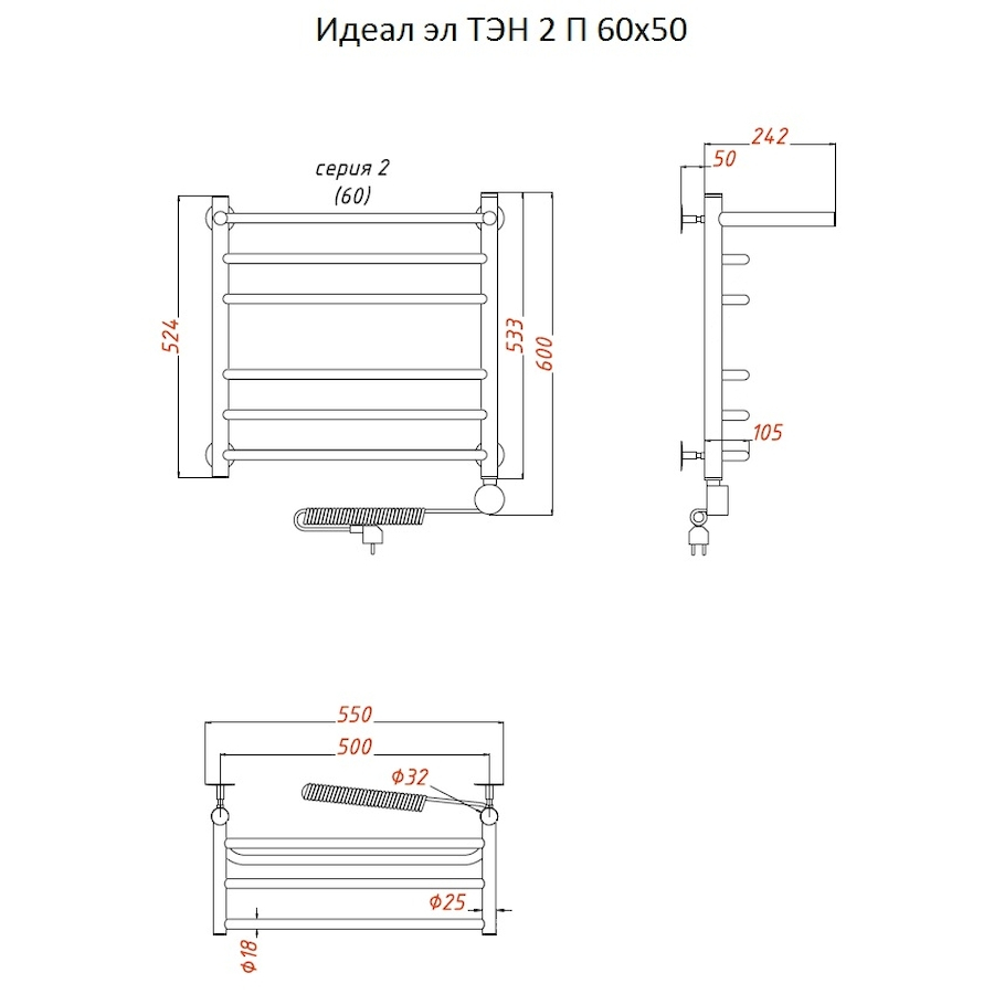 Электропровод с вилкой; Направление подключения: Левое, Правое |