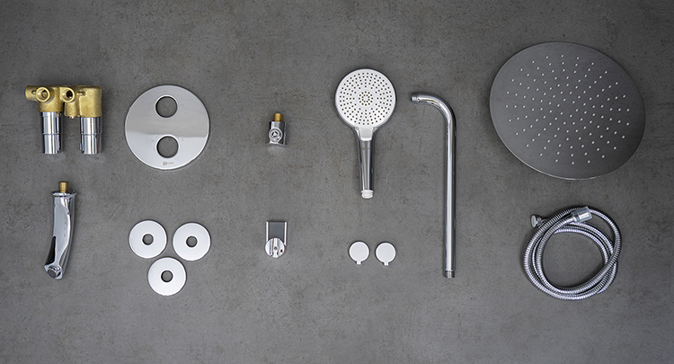 Аэратор, Держатель для душа, Душевая лейка, Душевой шланг, Комплект креплений, Кронштейн для верхнего душа, Скрытая монтажная часть |