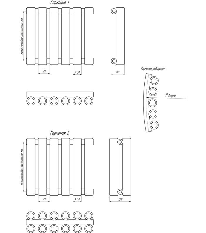 Настенный (по умолчанию), Напольный (по заказу), радиусные (по заказу только для однорядных, R ≥ 1000 мм) |