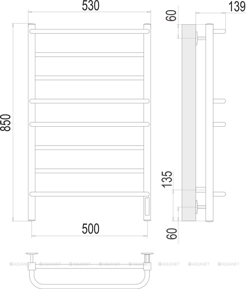 Полотенцесушитель - 1 шт.,Терморегулятор - 1 шт.,Комплект креплений - 1 шт.,Электрический кабель - 1 шт. |