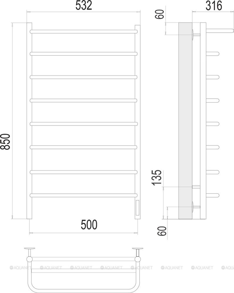 Полотенцесушитель - 1 шт.,Терморегулятор - 1 шт.,Комплект креплений - 1 шт.,Электрический кабель - 1 шт. |