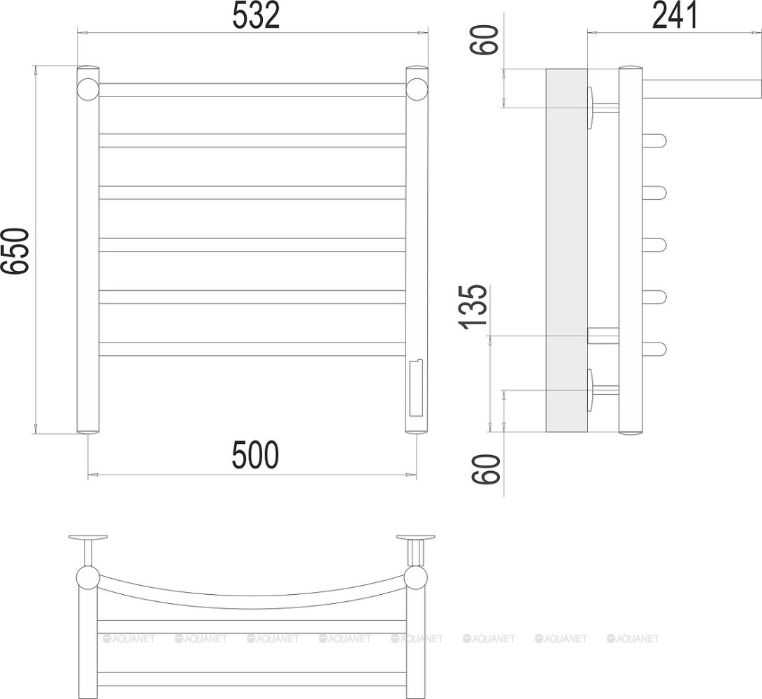 Полотенцесушитель - 1 шт.,Терморегулятор - 1 шт.,Комплект креплений - 1 шт.,Электрический кабель - 1 шт. |