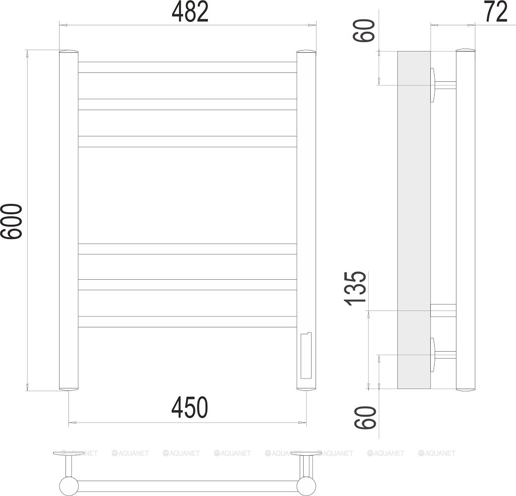 Полотенцесушитель - 1 шт.,Терморегулятор - 1 шт.,Комплект креплений - 1 шт.,Электрический кабель - 1 шт. |