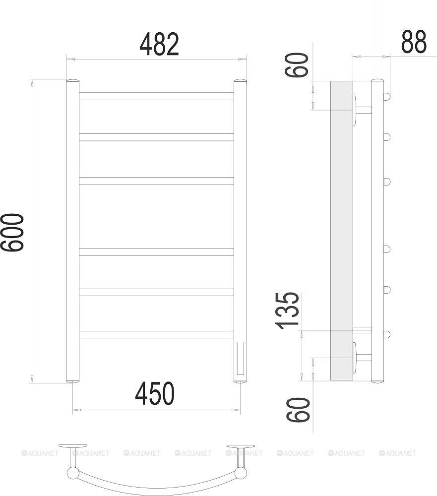 Полотенцесушитель - 1 шт.,Терморегулятор - 1 шт.,Комплект креплений - 1 шт.,Электрический кабель - 1 шт. |