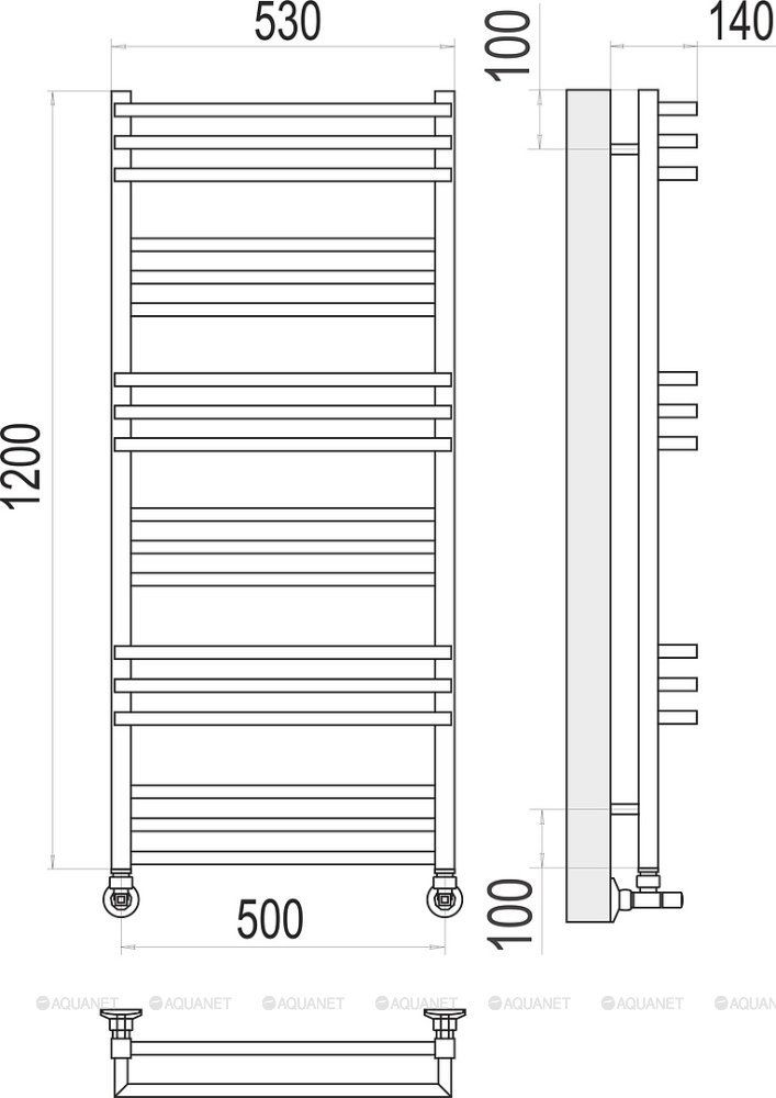 Полотенцесушитель - 1 шт.,Комплект креплений - 1 шт.,Комплект декоративных заглушек - 1 шт.,Кран Маевского - 1 шт.,Эксцентрик - 2 шт.,Отражатель - 2 шт.,Вентиль - 2 шт., |